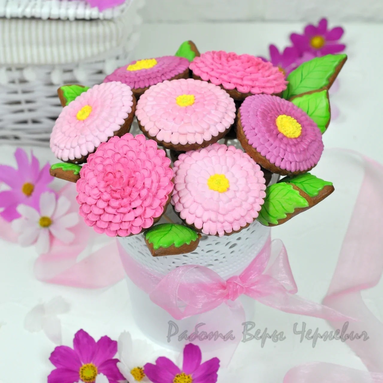 Вы получаете доступ сразу ко всем урокам курса и сможете выполнить более 18 авторских пряников и пряничный букет из астр