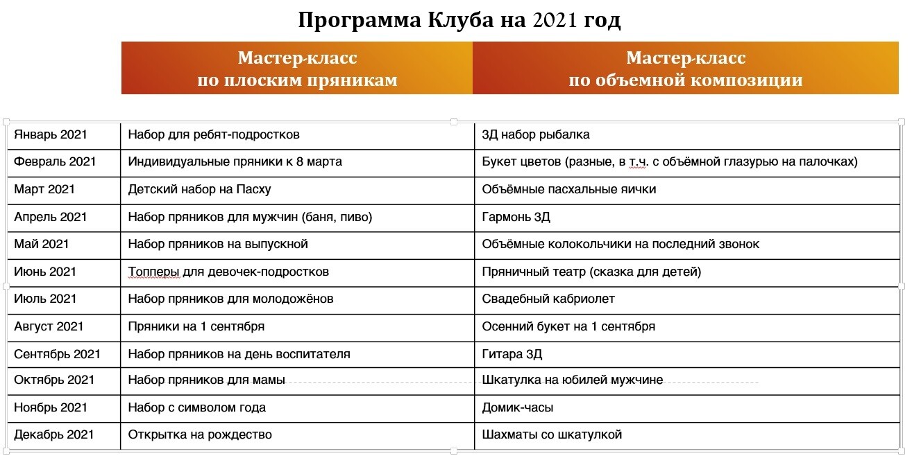 "Мы практики, я меня многолетний опыт продаж. Я прошла путь от увлечения в декрете до собственной пекарни. В своём клубе я делюсь всеми секретами успешных продаж, продвижения и другими нюансами пряничного дела, чтобы ученики могли максимально быстро начать реализовывать свои пряники и получать от любимого дела не только удовольствие, но и доход. чтобы понимали как достичь успеха в пряничном деле . Но также, я считаю, что не стоит идти учиться делать пряники только ради заработка. Это должно быть в первую очередь ваше любимое дело, которое приносит радость Вам и вашим близким"