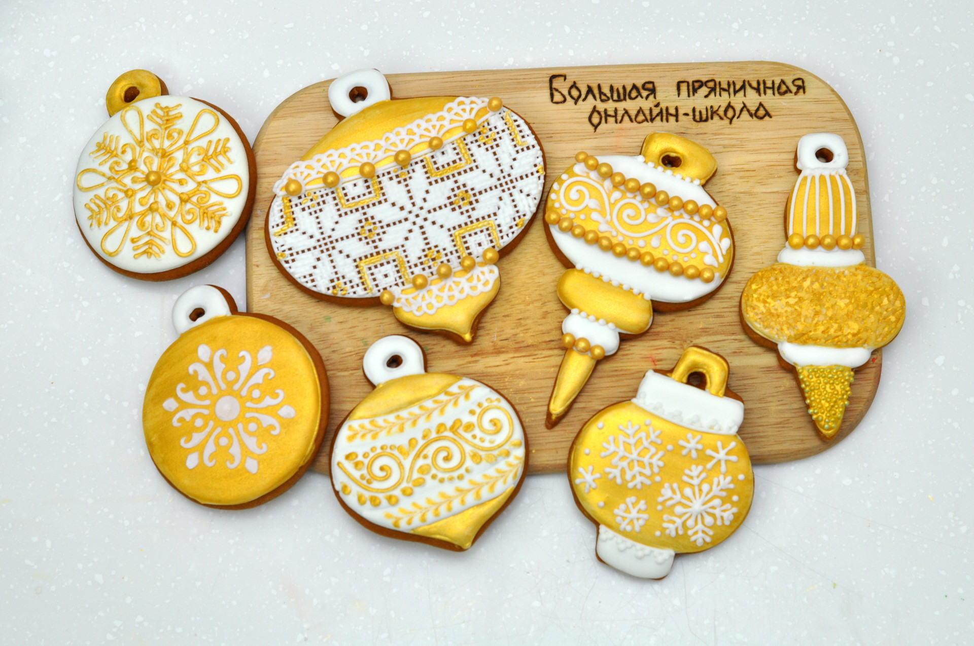 Сделаете праздничный набор в бело-золотой гамме из 7 пряников