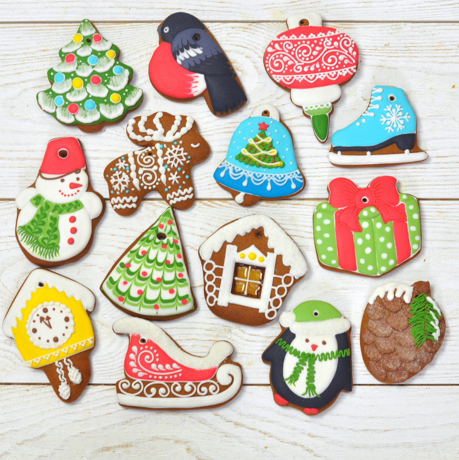 Вы научитесь делать более 35 вкусных и натуральных расписных пряничных подарков, в том числе наборы, украшения на елку и пряничный домик